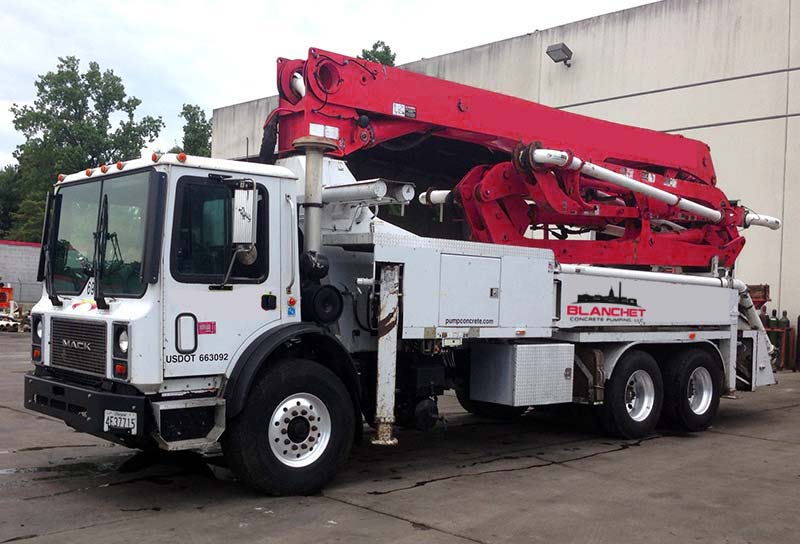 When a boom is not needed, this industry leading truck mounted concrete pump truck has everything you need to pump concrete from patios in your back yard to warehouse slabs. Since no outrigger are needed, this pump can set up in a small footprint to get the job done. With a theoretical concrete output of 95 yards per hour, this pump is textbook for that small 6 yard project or that 300 yard plus project.