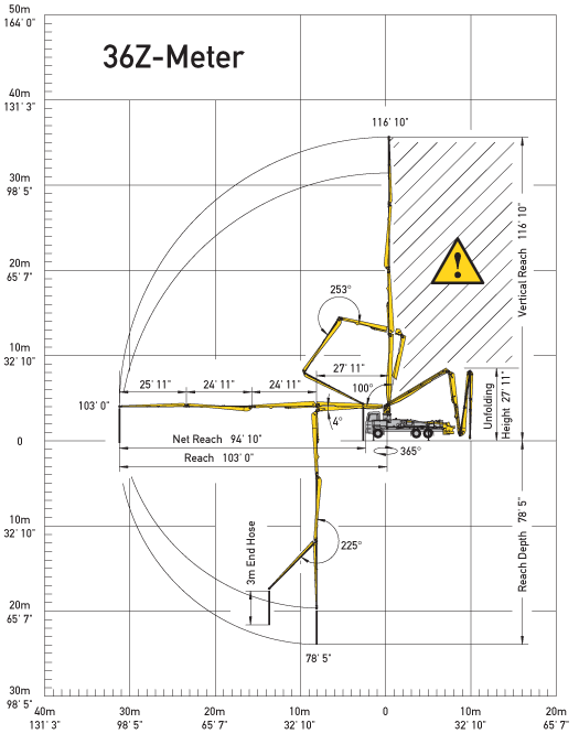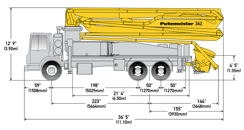 Putzmeister 36Z Truck-Mounted Concrete Pump features a detachable Putzmeister Z-Fold boom. The only four-section, 116-foot 10-inch boom on the market using X-style outriggers. Small footprint makes it perfect for restrictive job sites. Quick, easy truck-to-tower conversion.
