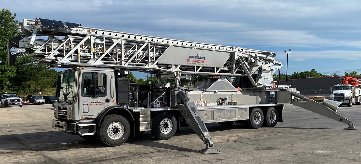 Offering a 107′ 1″ (38.56m) horizontal reach, the 33T4-20 features a patented feed conveyor, hinge and transfer that provide superior material flow in high capacity and difficult mix applications.
