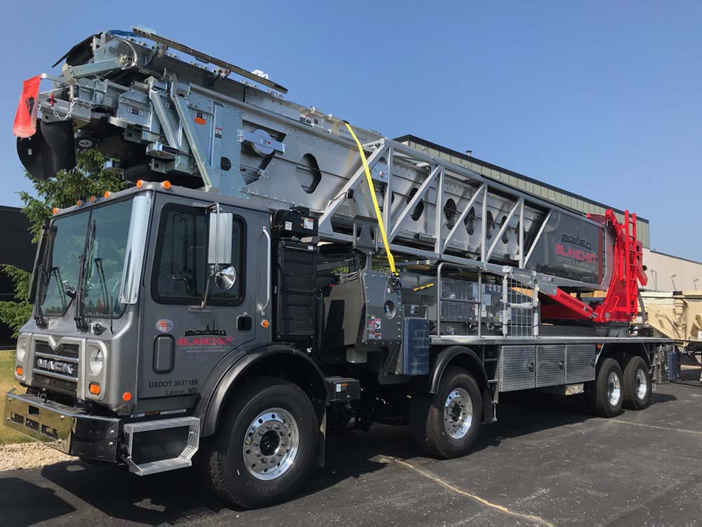 - Putzmeister TB-110 TelebeltThe TB 110 can place concrete at high volumes up to 360 yd³/hr (275m³/hr) and convey a wide variety of materials ranging from sand to 4″ (100mm) rock. With its steel/aluminum truss and three aluminum sections, this four-section telescopic conveyor offers 106′ 1″ (32.34m) of horizontal reach. The unit can set up and operate under heights as low as 15′ 9″ (4.80m).